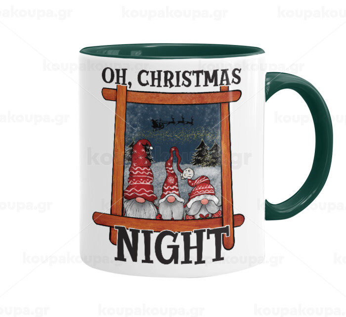 Oh Christmas Night, Κούπα χρωματιστή πράσινη, κεραμική, 330ml