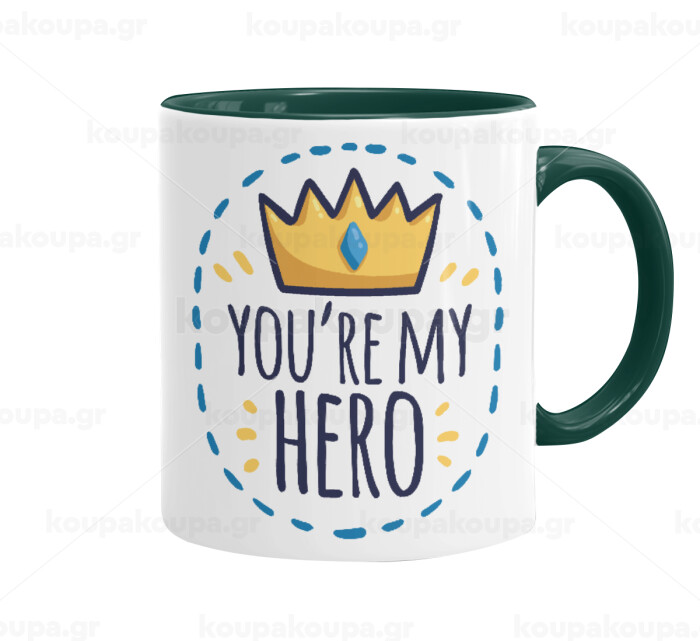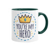 Dad, you are my hero!, Κούπα χρωματιστή πράσινη, κεραμική, 330ml