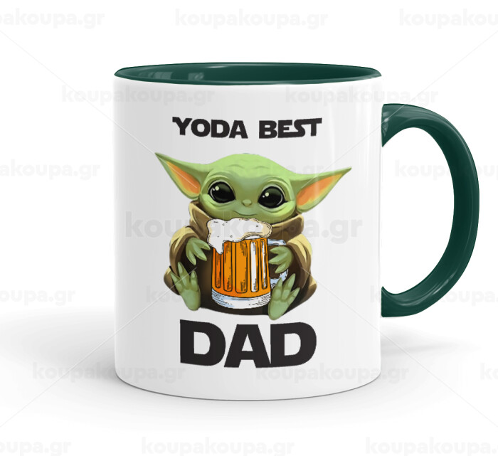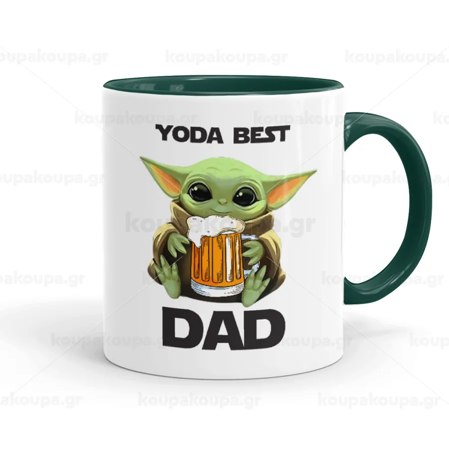 Yoda Best Dad, Κούπα χρωματιστή πράσινη, κεραμική, 330ml