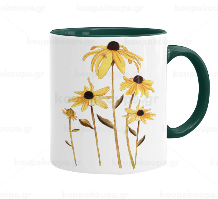 Daisies flower, Κούπα χρωματιστή πράσινη, κεραμική, 330ml