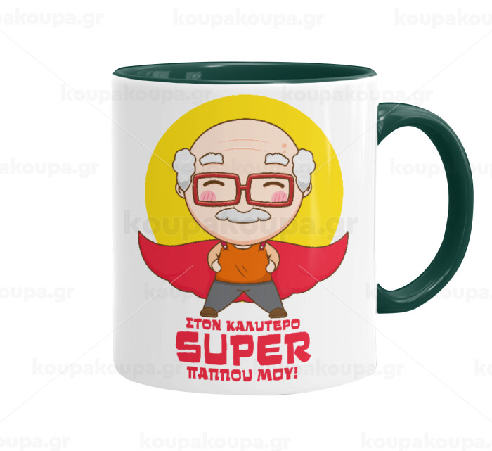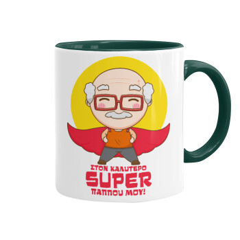 Στον καλύτερο Super παππού μου!, Κούπα χρωματιστή πράσινη, κεραμική, 330ml