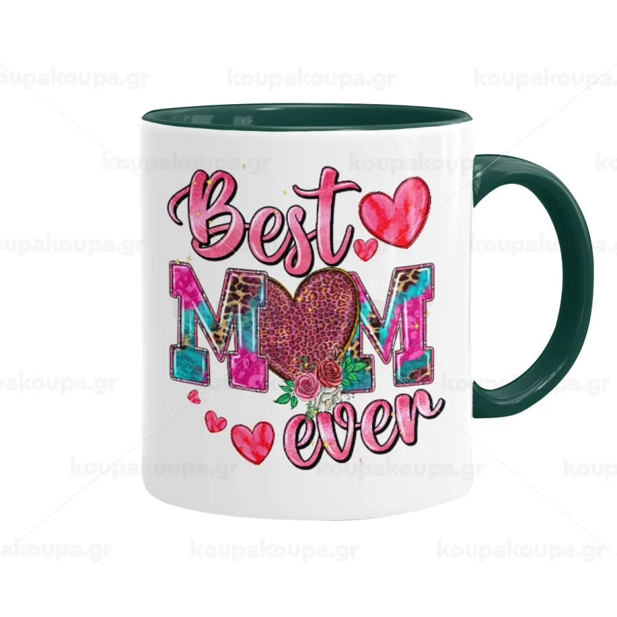 Best mom ever Mother's Day pink, Κούπα χρωματιστή πράσινη, κεραμική, 330ml