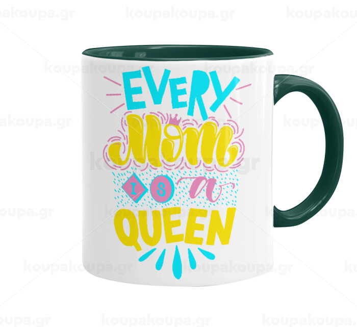 Every mom is a Queen, Κούπα χρωματιστή πράσινη, κεραμική, 330ml