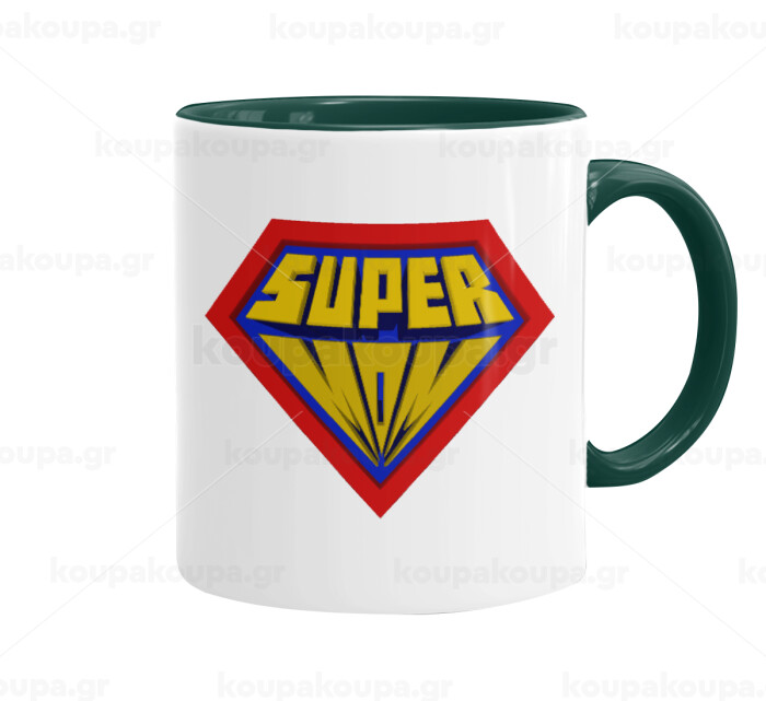Super Mom 3D, Κούπα χρωματιστή πράσινη, κεραμική, 330ml