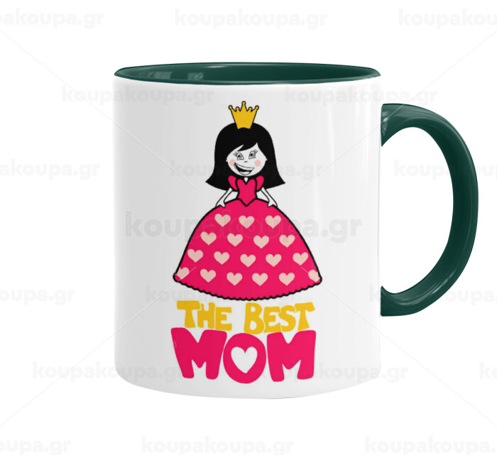 The Best Mom Queen, Κούπα χρωματιστή πράσινη, κεραμική, 330ml