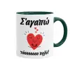 Σ΄αγαπώ τόοοοσο πολύ καρδιά, Κούπα χρωματιστή πράσινη, κεραμική, 330ml