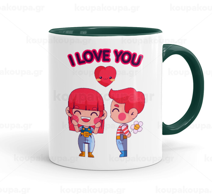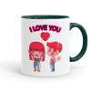 Couple, I love you, Κούπα χρωματιστή πράσινη, κεραμική, 330ml