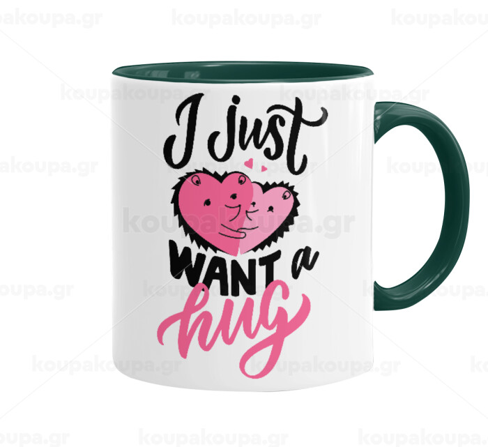 I Just want a hug!, Κούπα χρωματιστή πράσινη, κεραμική, 330ml