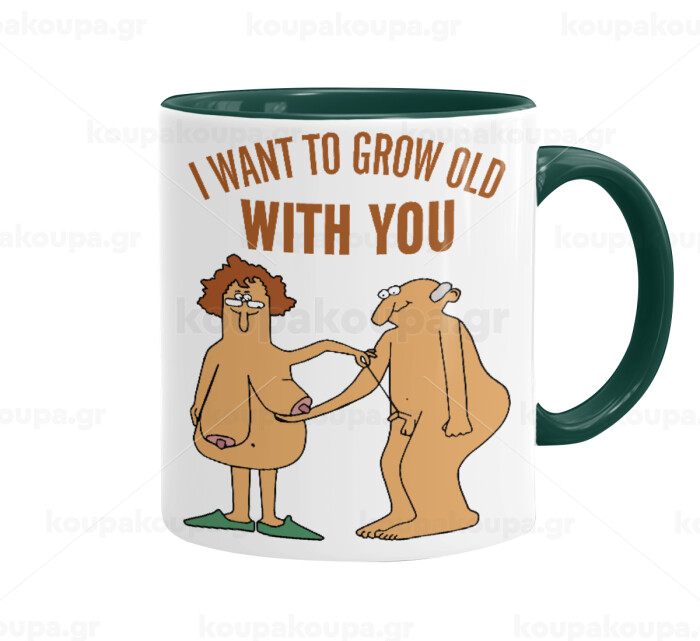 I want to grow old with you, Κούπα χρωματιστή πράσινη, κεραμική, 330ml