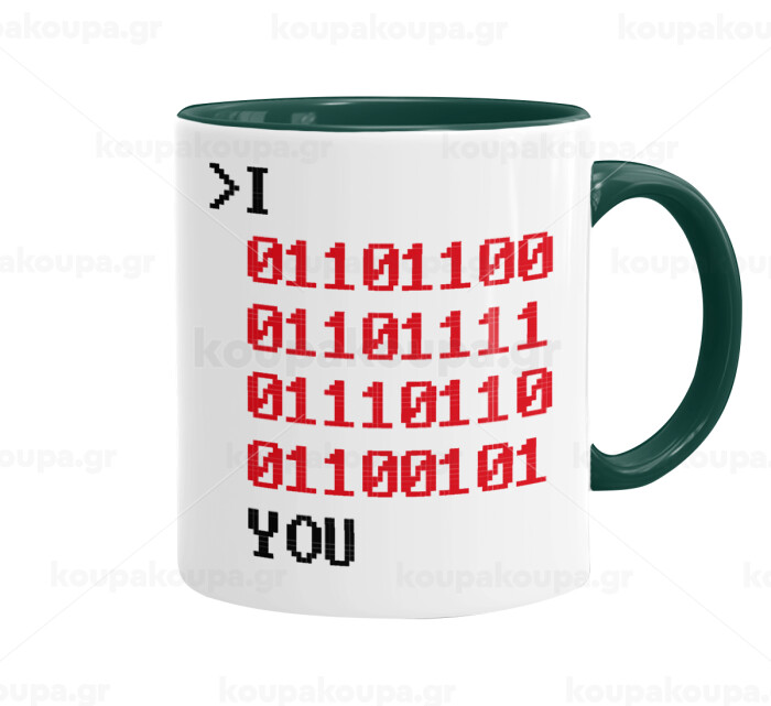 I .... YOU, binary secret MSG, Κούπα χρωματιστή πράσινη, κεραμική, 330ml