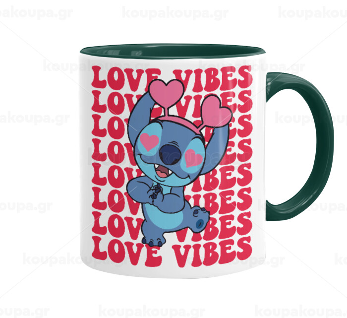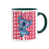 Lilo & Stitch Love vibes, Κούπα χρωματιστή πράσινη, κεραμική, 330ml