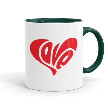Love, Κούπα χρωματιστή πράσινη, κεραμική, 330ml