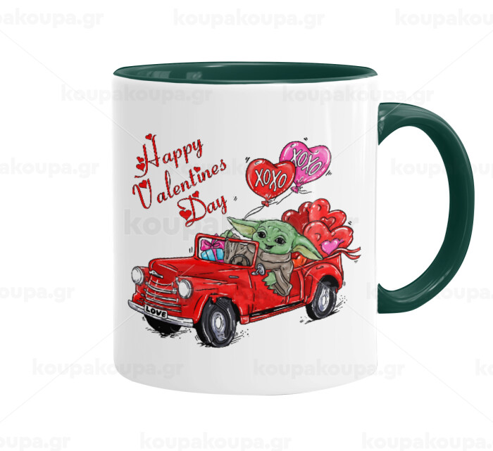 Yoda, happy valentines day (xoxo), Κούπα χρωματιστή πράσινη, κεραμική, 330ml