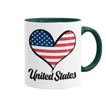 USA flag, Κούπα χρωματιστή πράσινη, κεραμική, 330ml