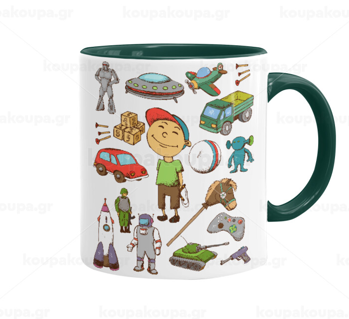 Toys Boy, Κούπα χρωματιστή πράσινη, κεραμική, 330ml