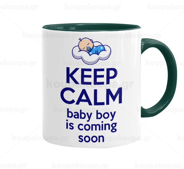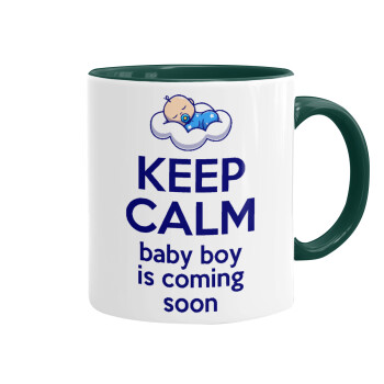 KEEP CALM baby boy is coming soon!!!, Κούπα χρωματιστή πράσινη, κεραμική, 330ml