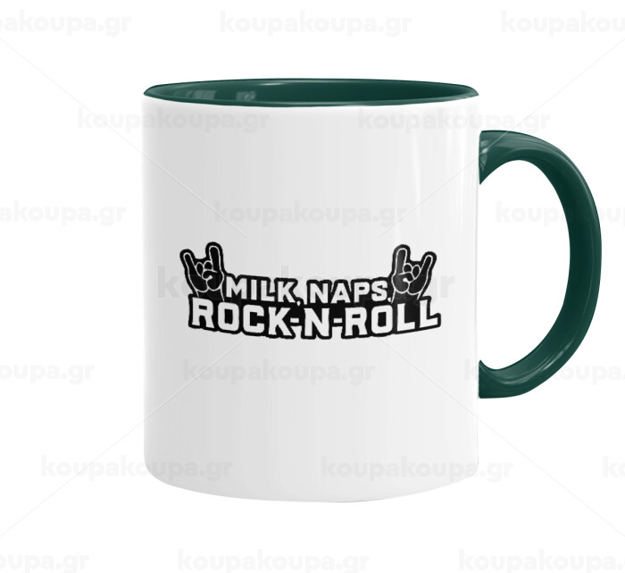 Milk, Naps, Rock N Roll, Κούπα χρωματιστή πράσινη, κεραμική, 330ml