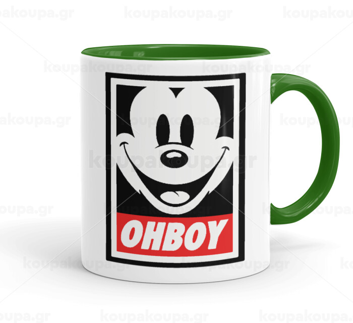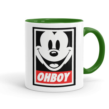 Oh boy μίκυ, Κούπα χρωματιστή πράσινη, κεραμική, 330ml