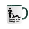 Happy Wife, Happy Life, Κούπα χρωματιστή πράσινη, κεραμική, 330ml