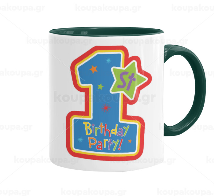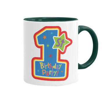 Happy 1st Birthday, Κούπα χρωματιστή πράσινη, κεραμική, 330ml