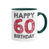 Happy 60 birthday!!!, Κούπα χρωματιστή πράσινη, κεραμική, 330ml