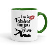 I am the fabulous Birthday Diva, Κούπα χρωματιστή πράσινη, κεραμική, 330ml