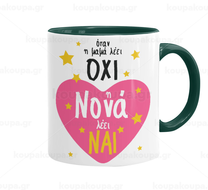 Η νονά λέει ναι!!!, Κούπα χρωματιστή πράσινη, κεραμική, 330ml