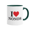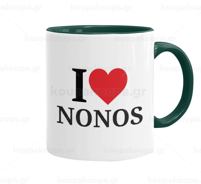 I Love ΝΟΝΟΣ, Κούπα χρωματιστή πράσινη, κεραμική, 330ml