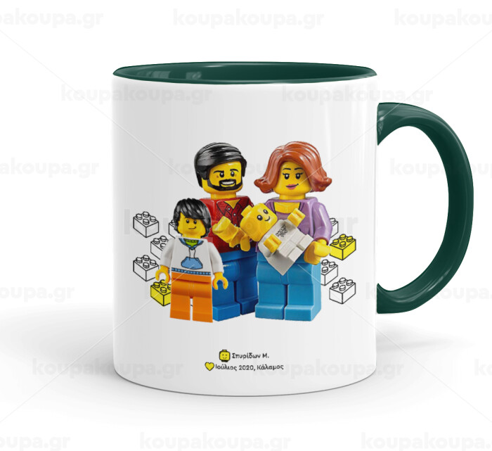 Τύπου Lego family, Κούπα χρωματιστή πράσινη, κεραμική, 330ml