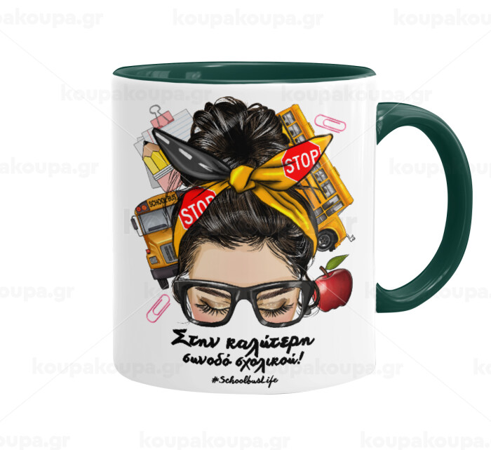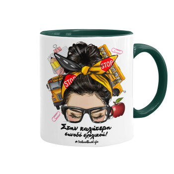 Στην καλύτερη συνοδό σχολικού!, Κούπα χρωματιστή πράσινη, κεραμική, 330ml
