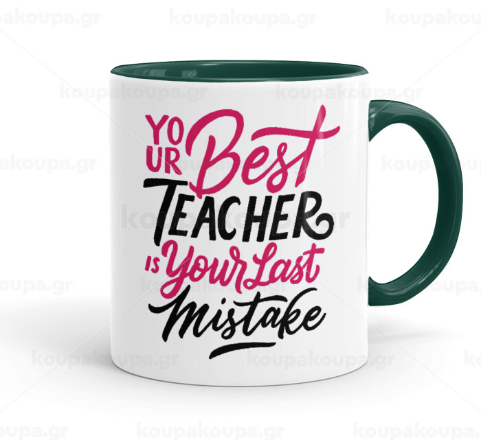Typography quotes your best teacher is your last mistake, Κούπα χρωματιστή πράσινη, κεραμική, 330ml