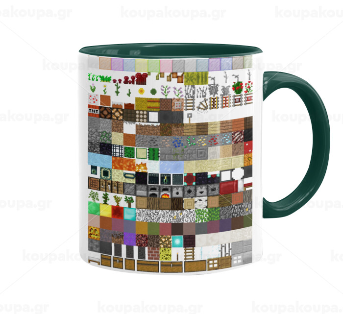 Minecraft blocks, Κούπα χρωματιστή πράσινη, κεραμική, 330ml