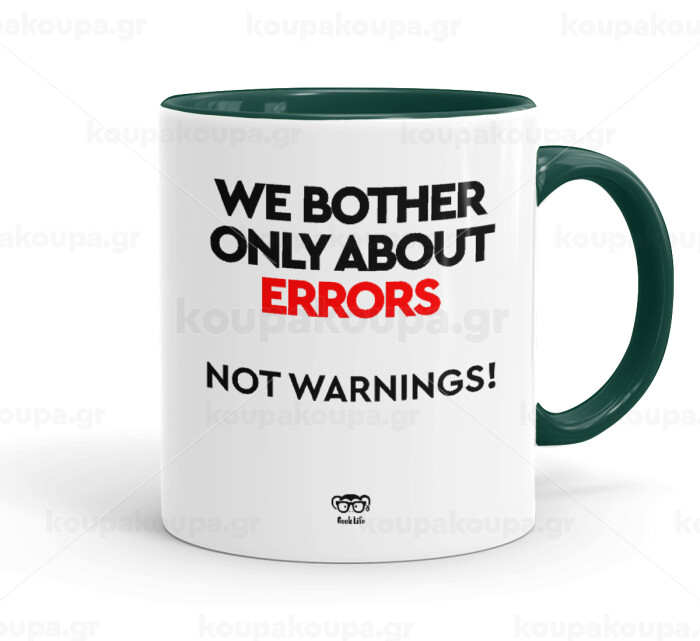 We bother only about errors, not warnings, Κούπα χρωματιστή πράσινη, κεραμική, 330ml