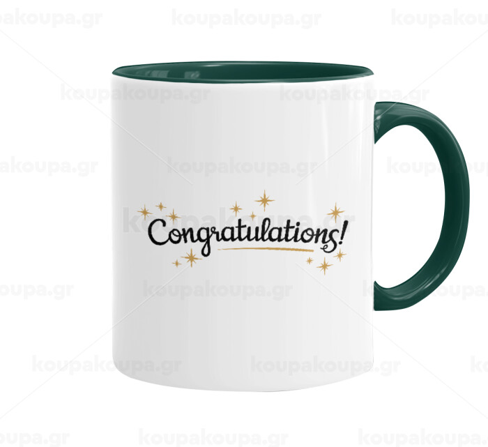 Congratulations, Κούπα χρωματιστή πράσινη, κεραμική, 330ml