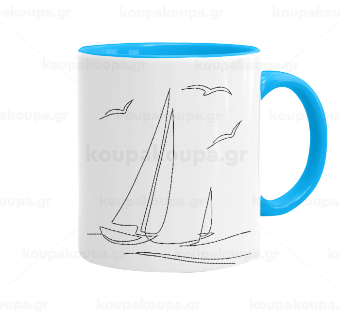 Ιστιοπλοΐα Sailing, Κούπα χρωματιστή γαλάζια, κεραμική, 330ml