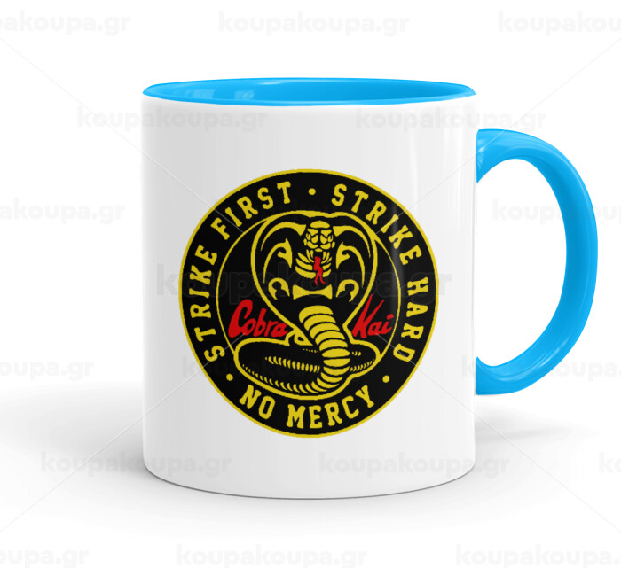 cobra kai strike first dojo, Κούπα χρωματιστή γαλάζια, κεραμική, 330ml