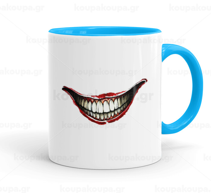 Joker smile, Κούπα χρωματιστή γαλάζια, κεραμική, 330ml