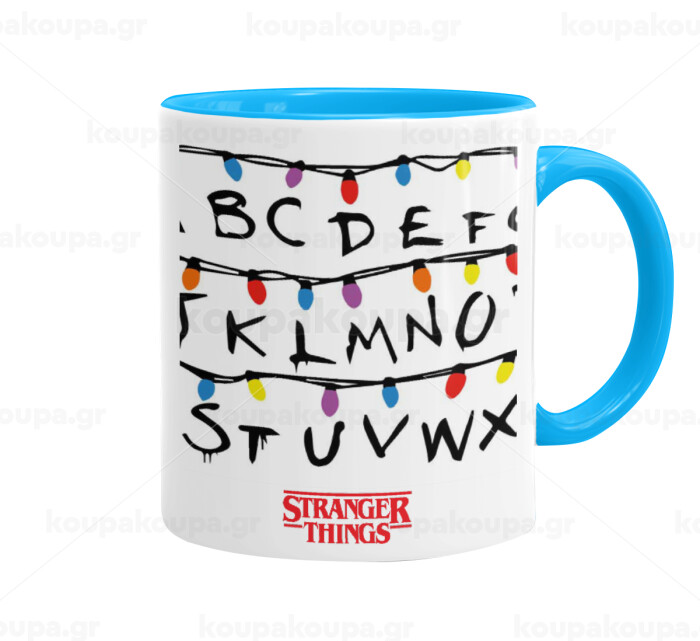 Stranger Things ABC, Κούπα χρωματιστή γαλάζια, κεραμική, 330ml