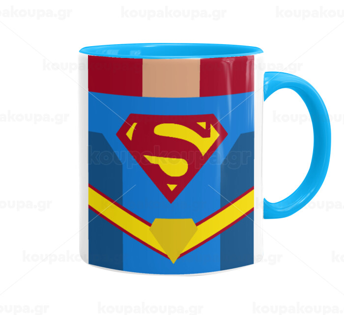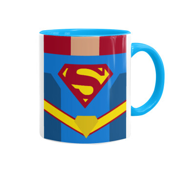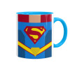 Superman flat, Κούπα χρωματιστή γαλάζια, κεραμική, 330ml