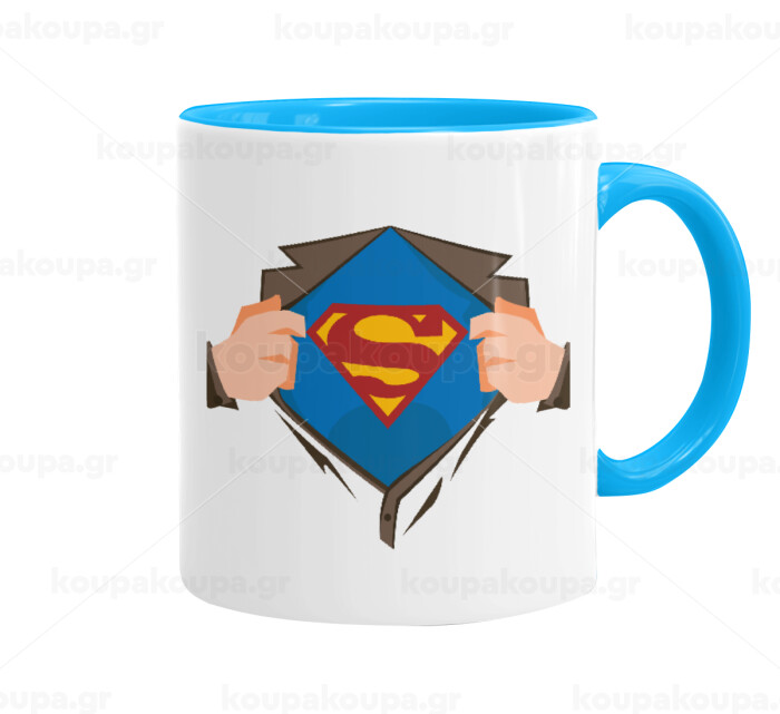 Superman hands, Κούπα χρωματιστή γαλάζια, κεραμική, 330ml