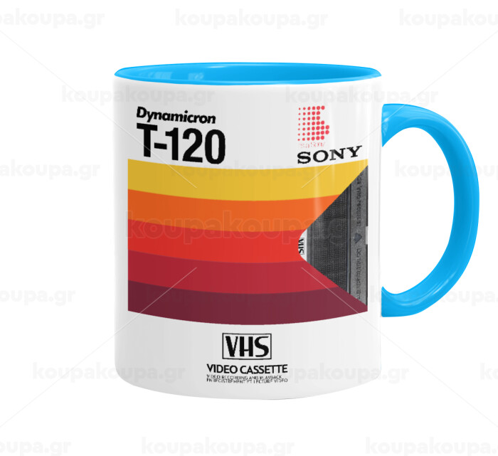 VHS sony dynamicron T-120, Κούπα χρωματιστή γαλάζια, κεραμική, 330ml