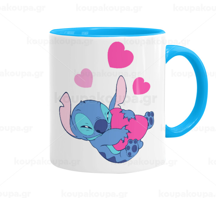 Lilo & Stitch hugs and hearts, Κούπα χρωματιστή γαλάζια, κεραμική, 330ml