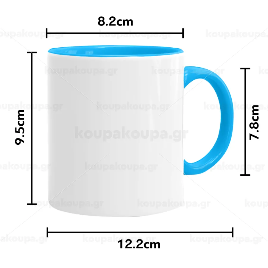 Κούπες κλασικές γυαλιστερές με χρωματιστό χερούλι και εσωτερικό, εξαιρετικής ποιότητας με έντονα χρώματα.  Πλύσιμο σε πλυντήριο πιάτων, κατάλληλη για φούρνο μικροκυμάτων. Χρησιμοποιήστε την για ζεστά και κρύα ροφήματα.