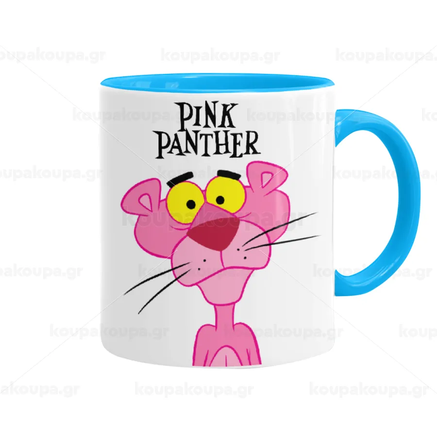 Pink Panther cartoon, Κούπα χρωματιστή γαλάζια, κεραμική, 330ml