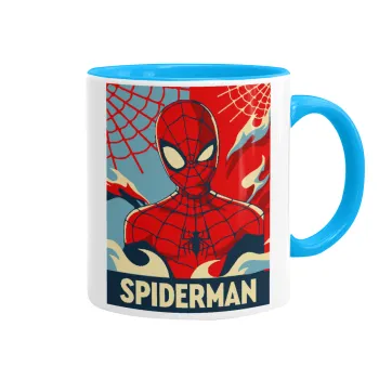 Spiderman kid, Κούπα χρωματιστή γαλάζια, κεραμική, 330ml