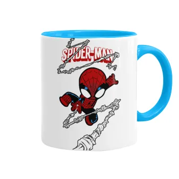 Spiderman kid, Κούπα χρωματιστή γαλάζια, κεραμική, 330ml