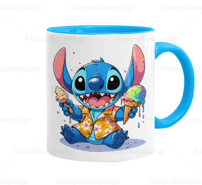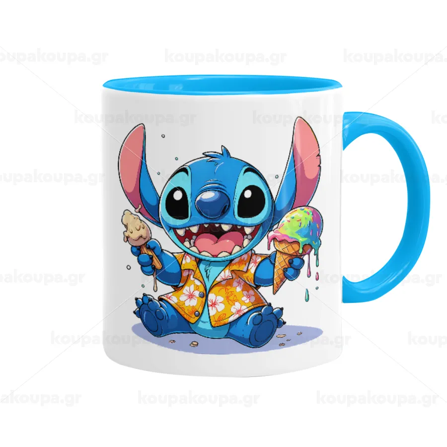 Stitch Ice cream, Κούπα χρωματιστή γαλάζια, κεραμική, 330ml