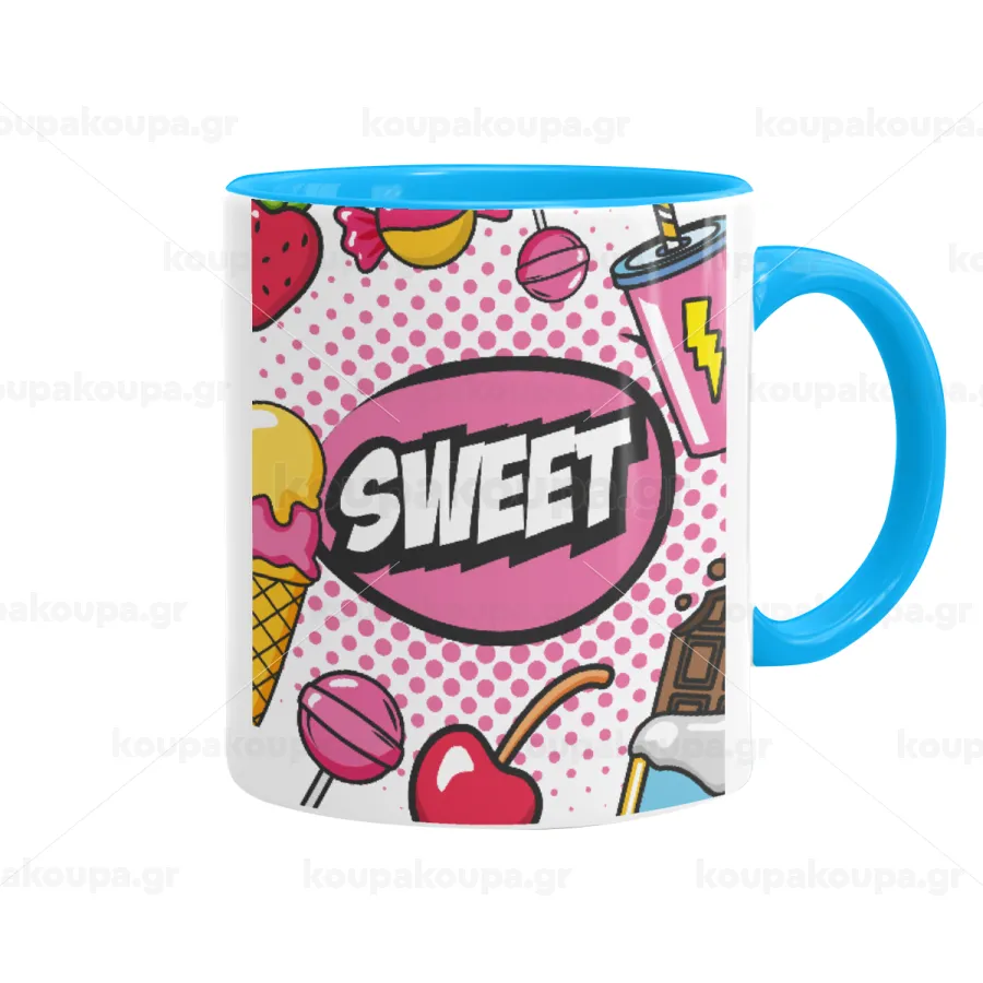 SWEET, Κούπα χρωματιστή γαλάζια, κεραμική, 330ml