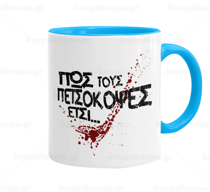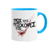 Πως τους πετσόκοψες έτσι..., Κούπα χρωματιστή γαλάζια, κεραμική, 330ml