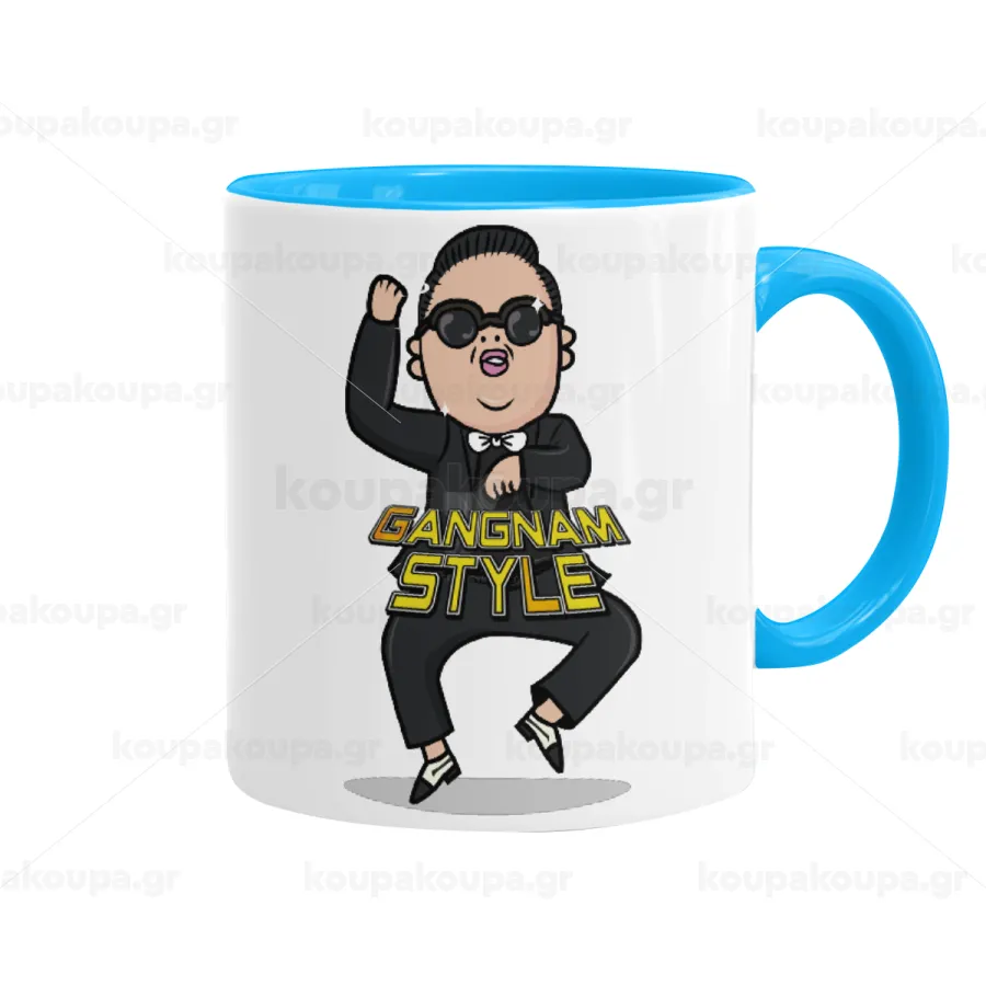 PSY - GANGNAM STYLE, Κούπα χρωματιστή γαλάζια, κεραμική, 330ml